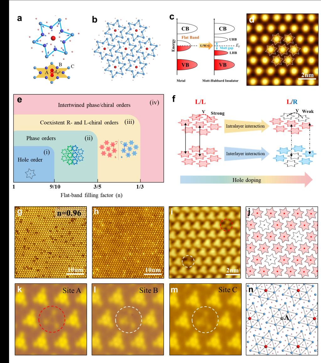 近日,成人短视频 程志海课题组、季威课题组以及湖南师范大学周伟昌课题组等展开合作,利用扫描隧道显微技术(STM),详细研究了电荷掺杂对1T-TaS2平带中填充依赖的电子和原子有序态的精细调控机制。研究团队不仅观察到了电子空位、相位畴、手性畴以及交织的相位畴和手性畴等多种电子态的演化,还进一步发现了手性畴界处的环状团簇以及层间手性堆叠导致的向列相电子态等。该研究不仅加深了对该体系平带填充依赖的电子/...