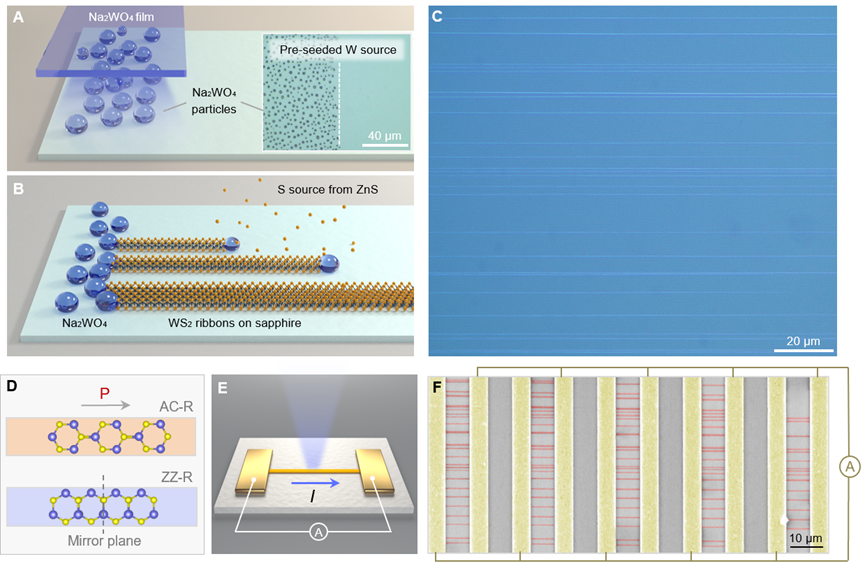 成人短视频 物理学系、量子态构筑与测控教育部重点实验室刘灿副教授与北京大学刘开辉教授、中国科学院半导体研究所魏钟鸣研究员、中国科学院深圳先进技术研究院丁峰研究员等团队合作,提出“多重界面耦合原子制造”新策略,首次实现兼具特定手性结构(包括扶手椅型、之字型及其他手性结构)及相干极化方向的二硫化钨(WS2)条带阵列的“全同”控制制造。通过系统研究手性结构与体光伏效应的对应关系,实现1000余根扶手椅型条带...